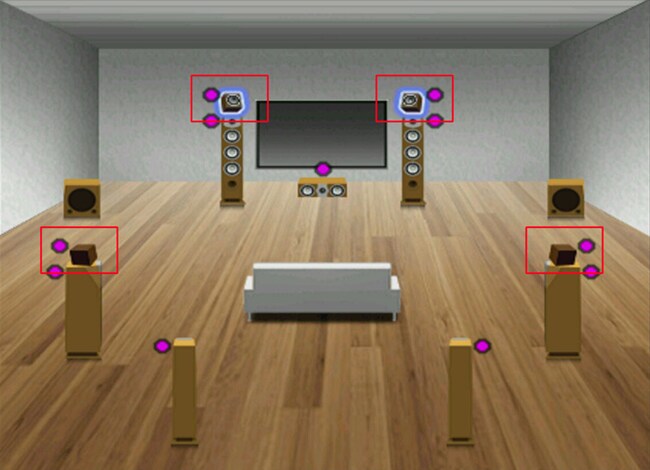 If it is difficult to place ceiling speakers, you can place speakers in more practical Front Height position. Any layout can work not only for Dolby Atmos playback but also for CINEMA DSP processing.