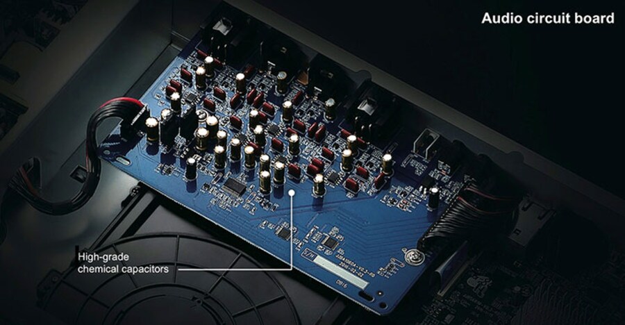 BD-A1060은 자기실드 처리된 독립적인 전원과 오디오 회로기판을 제공합니다. 또한, 전원부는 디지털과 아날로그 섹션을 독립적으로 설계하여, 전기 및 자기 간섭으로 인한 노이즈를 억제하여 더 낮은 임피던스 구동과 S/N 비를 향상시켜줍니다.