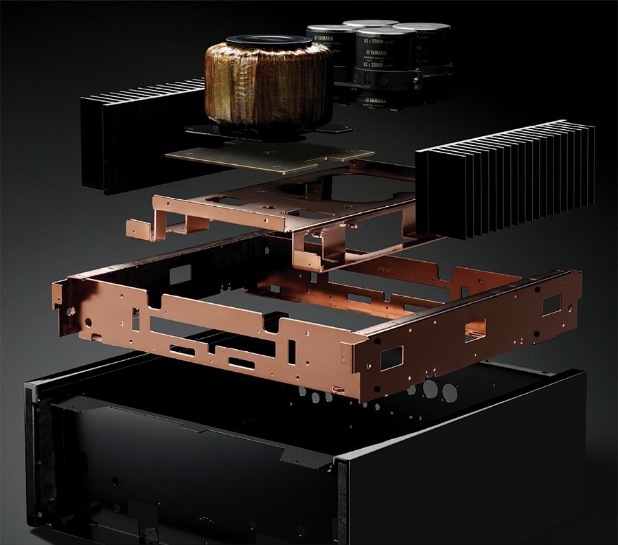 또한, 파워 트랜스, 블록 커패시터 및 히트 싱크를 단단한 유선형 구조에 볼트로 직접 고정하여 기계식 접지 개념을 채택함으로써 구조가 완벽한 지지를 받고 진동의 영향을 제거했습니다.