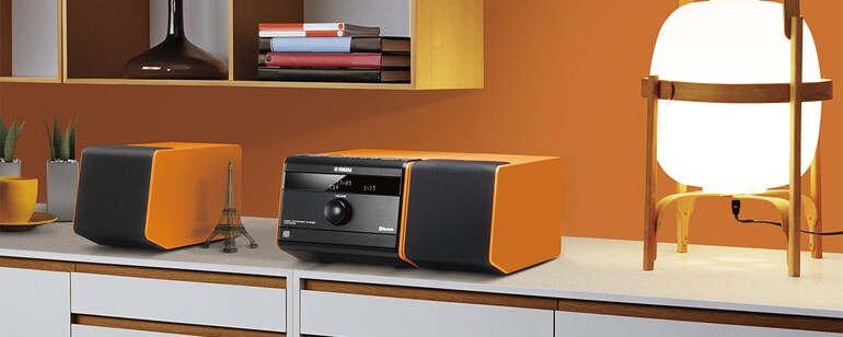 전면 패널은 자연스럽게 떠 있는 듯 보입니다. 사용자에게 편안한 느낌을 주기 위해 설계한 MCR-B020은 어떤 주거공간이나 개인적인 공간에 자연스럽게 어울립니다. 컬러 라인업은 세련된 블랙, 스타일리시한 두 가지 톤의 오렌지와 화이트를 제공합니다 - 당신의 스타일과 인테리어 디자인에 맞는 컬러를 선택할 수 있습니다.