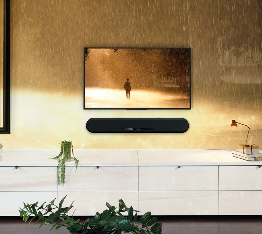 YAS-108은 소파 한 가운데 앉지 않아도 TV 사운드를 즐길 수 있습니다. 높이가 낮게 설계된 사운드바 는 TV 앞쪽에 거치하거나 벽걸이로 설치할 수 있습니다. 블루투스 기능과 아마존 알렉사를 통해 좋아 하는 음악을 무선으로 즐길 수 있습니다.