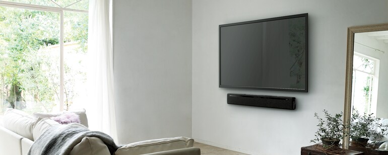 YAS-306은 인테리어를 아름답게 하는데 도움을 주는 라운드 형태로 TV 장에 놓거나 벽에 설치할 수 있습니다.