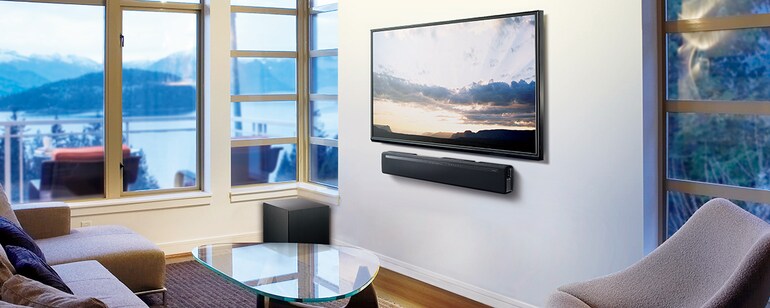 라운드 형태의 블랙 크롬 도금으로 세련된 느낌을 더해줍니다. 센터 유닛은 랙 위에 놓거나 벽걸이 설치로 사용할 수 있습니다. 심플한 디자인의 서브우퍼와 함께 YAS-706은 룸 인테리어와 깔끔하게 어울립니다.