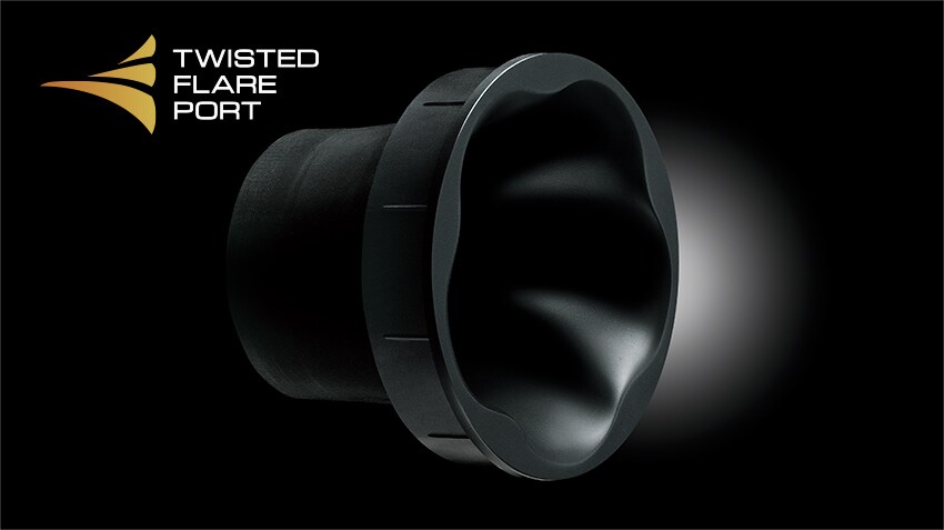 The subwoofer features Yamaha's unique Twisted Flare Port technology, utilising a flared, gently twisting shape that diffuses the vortex of air generated around the edge of the port and creates a smooth flow of air. This reduces extraneous noise not present in the original input signal and provides clear, accurate low frequency reproduction. From special effect sounds in movies to the atmosphere of a live venue, you hear bass that is clear, tight and realistic.