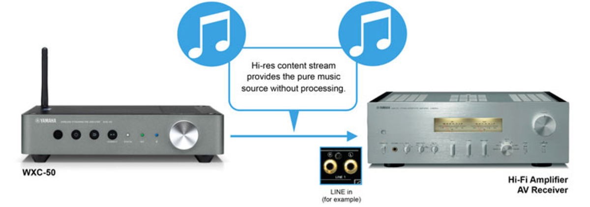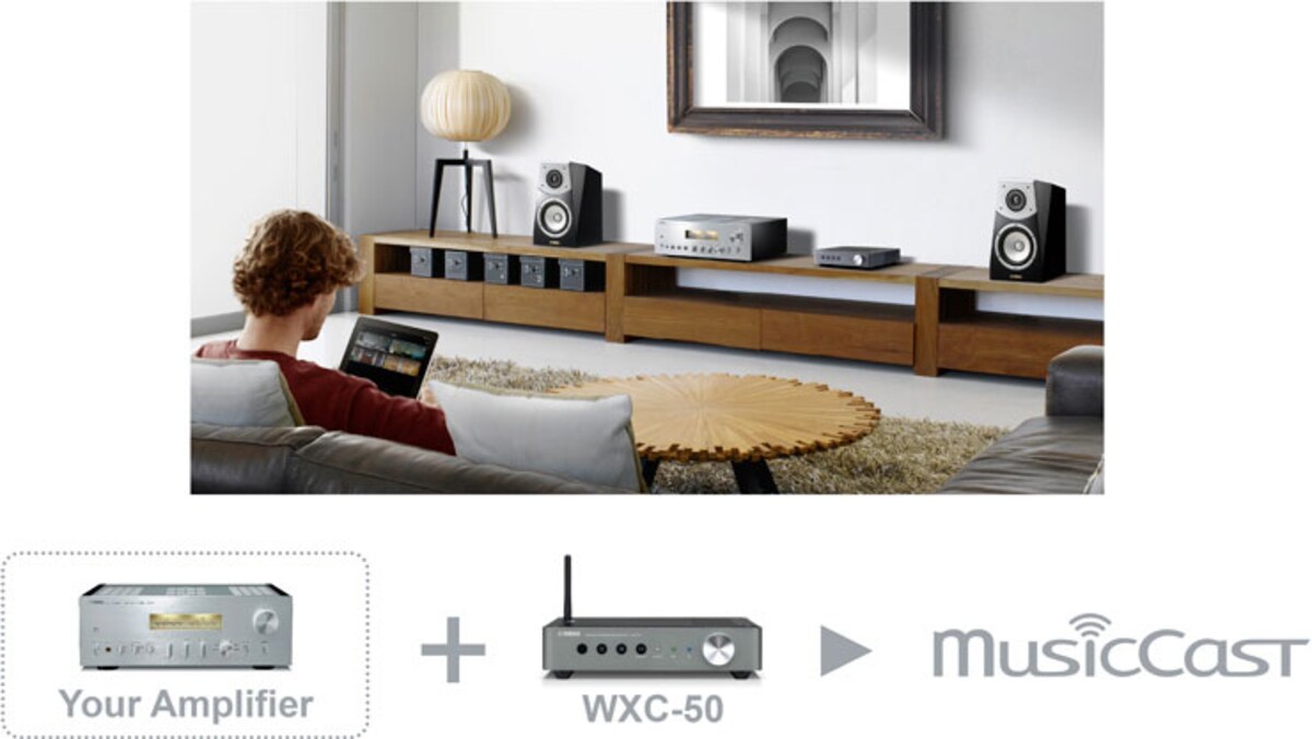 사용중인 하이파이 앰프나 AV 리시버가 뮤직캐스트나 네트워크와 호환되지 않는 경우라도 간단하게 WXC-50을 추가하면, 쉽게 뮤직캐스트(멀티 룸 오디오)와 네트워크 오디오를 즐길 수 있습니다.