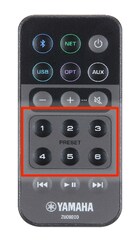 리모컨에 있는 6개의 프리셋숫자 버튼을 누르면 좋아하는 네트워크/USB 소스와 인터넷 라디오 스테이션, NAS 또는 USB 메모리에 저장된 앨범이나 음악 등을 즉시 재생할 수 있습니다.