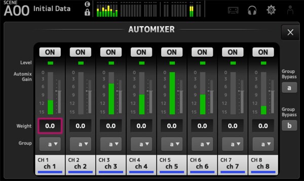 다중 참가자 음성 및 방송 애플리케이션에 이상적인 새로운 Automixer 기능은 입력 채널 1에서 8까지 사용할 수 있습니다. 이 기능은 마이크 게인 분배를 원활하고 자연스럽게 최적화하여 운영자가 여러 페이더를 조작할 필요 없이 배경 소음과 피드백을 안정적으로 줄여줍니다. Automixer는 설정이 매우 쉬우며 운영자가 오디오 제작의 다른 측면에 집중할 수 있게 해줍니다.