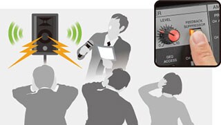 라이브 공연이나 연설 중에 종종 원치 않는 피드백의 하울링으로 갑작스럽게 불편하면서 난처한 상황이 발생합니다. 다행히도 EMX7/5에는 야마하의 독자적인 디지털 기술을 활용한 피드백 제어기(Feedback Suppressor)가 장착되어 있어 버튼 스위치 1개만으로 이 불편한 피드백이 즉시 제거됩니다.