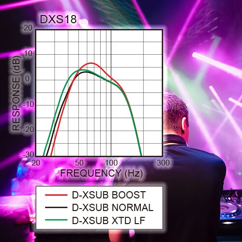 강력한 D-XSUB 처리를 통해 저주파를 완전히 제어할 수 있습니다. NORMAL 모드는 이상적으로 균형 잡힌 저주파 응답을 제공하는 반면, BOOST 모드는 더 촘촘하고 집중력 있는 저음을 제공합니다. XTENDED LF 모드는 더 작은 캐비닛에서 들어본 적 없는 저주파 확장을 제공하는 우레와 같은 하단부를 위해 저음 주파수를 더 아래로 떨어뜨립니다. DXS 시리즈 액티브 서브우퍼의 파워와 다양한 기능으로 풀레인지 시스템을 한 단계 업그레이드하십시오.