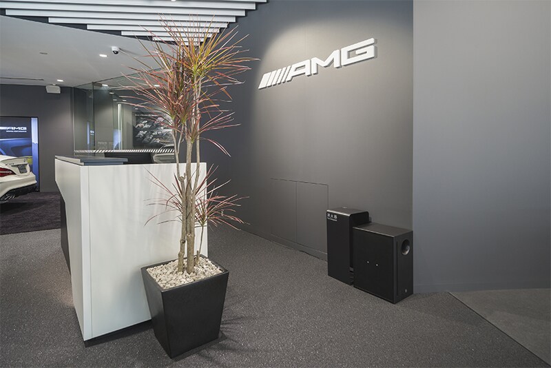 AMG Performance Center, Kyobashi was opened in October 2017 by YANASE CO., LTD., one of the most traditional import-car dealers in Japan since 1915. Yamaha VXS5 and VXS5W surface-mount speakers, a VXS10ST subwoofer, and a PA2120 power amplifier were installed to deliver sound throughout the showroom. We spoke to Mr. Noriyoshi Aoyama, supervisor at the AMG Performance Center, and Mr. Takashi Okada, sound designer and planner with Master Mind Productions, Inc. the company commissioned to produce the audio installation.