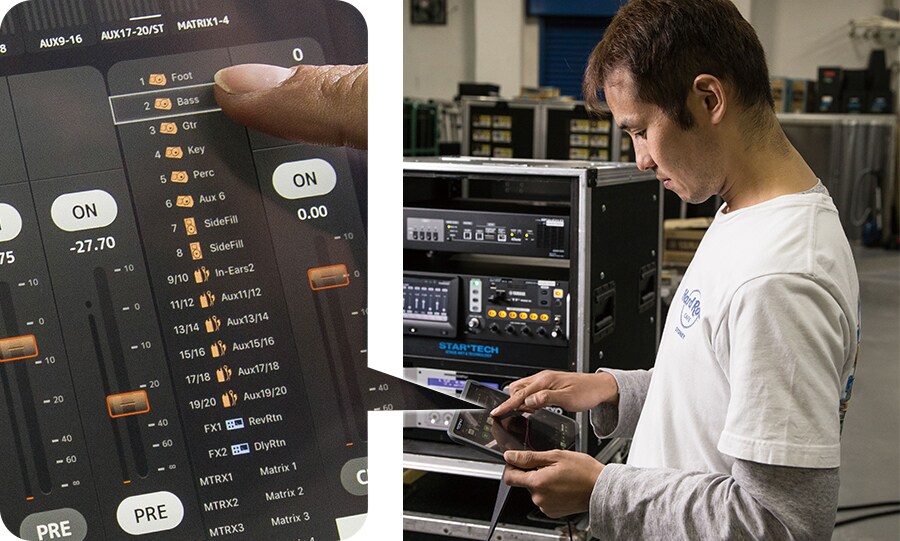 TF StageMix is an application for the Apple iPad, which allows faster operation than the touch panel. In STAR*TECH, when it connects the TF-RACK with an iPad via Wi-Fi or a regular cable, it wirelessly combines cables. According to Takada, “the GUI is considered thoroughly” regarding the TF StageMix.