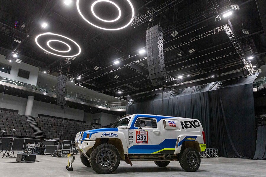 다양한 컨퍼런스 시설과 4,500석 규모의 스포츠 경기장을 갖춘 O2 Universum은 경기장에서 비행하는 대형 NEXO L-R 라인 어레이 시스템과 비교했을 때 가장 큰 회의실과 경기장에서 데모 몰입형 사운드 시스템을 설치하기에 완벽한 장소였습니다.