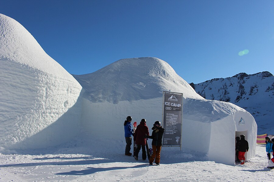 해발 2,600m에 위치한 Ice Camp 2020은 각각 직경 12m, 높이 6m의 독창적으로 설계된 3개의 이글루로 구성되었습니다. 그 중심은 오스트리아의 아티스트 Max Seibald가 만든 독특한 아이스 심포지움(Ice Symphonium)입니다. 얼음으로 완전하게 제작된 이 인상적인 악기는 본질적으로 거대하고 양식화된 뿔과 함께 일종의 '노래하는 그릇'이 됩니다. 방문객은 터치패드를 사용하여 아티스트가 말하는 것처럼 '부드러운 구의 음악'과 함께 숭고하고 조화로운 분위기를 불러 일으킬 수 있습니다.