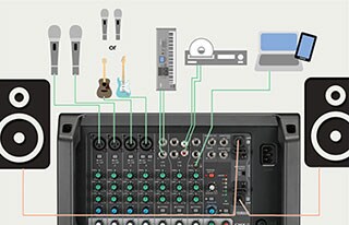 EMX2의 유연한 연결성으로 반주와 함께 노래를 부르거나, BGM과 함께 연설/발표하거나, 휴대용 재생 장치의 오디오를 레코딩하는 마이크를 최대 4대까지 사용할 수 있습니다. 또한 팬텀 전원과 고임피던스 입력 성능으로 고성능 콘덴서 마이크를 사용하거나 외장 기어를 사용하지 않고 기타를 직접 연결할 수 있습니다. 그리고 EMX2는 앰프이므로 패시브 스피커를 연결하여 자신의 사운드 시스템을 쉽게 구성할 수 있습니다. 또한 야마하 DXS 시리즈 파워드 서브우퍼를 간단하게 연결하여 소규모 클럽이나 야외 공연장에서의 디제잉과 같이 저음 성능이 무엇보다 중요한 분야의 PA 시스템을 구성할 수 있습니다.
