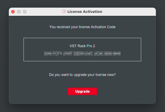 코드를 입력하면 VST Rack Pro 2에 대한 (License) Activation Code를 받게 됩니다.