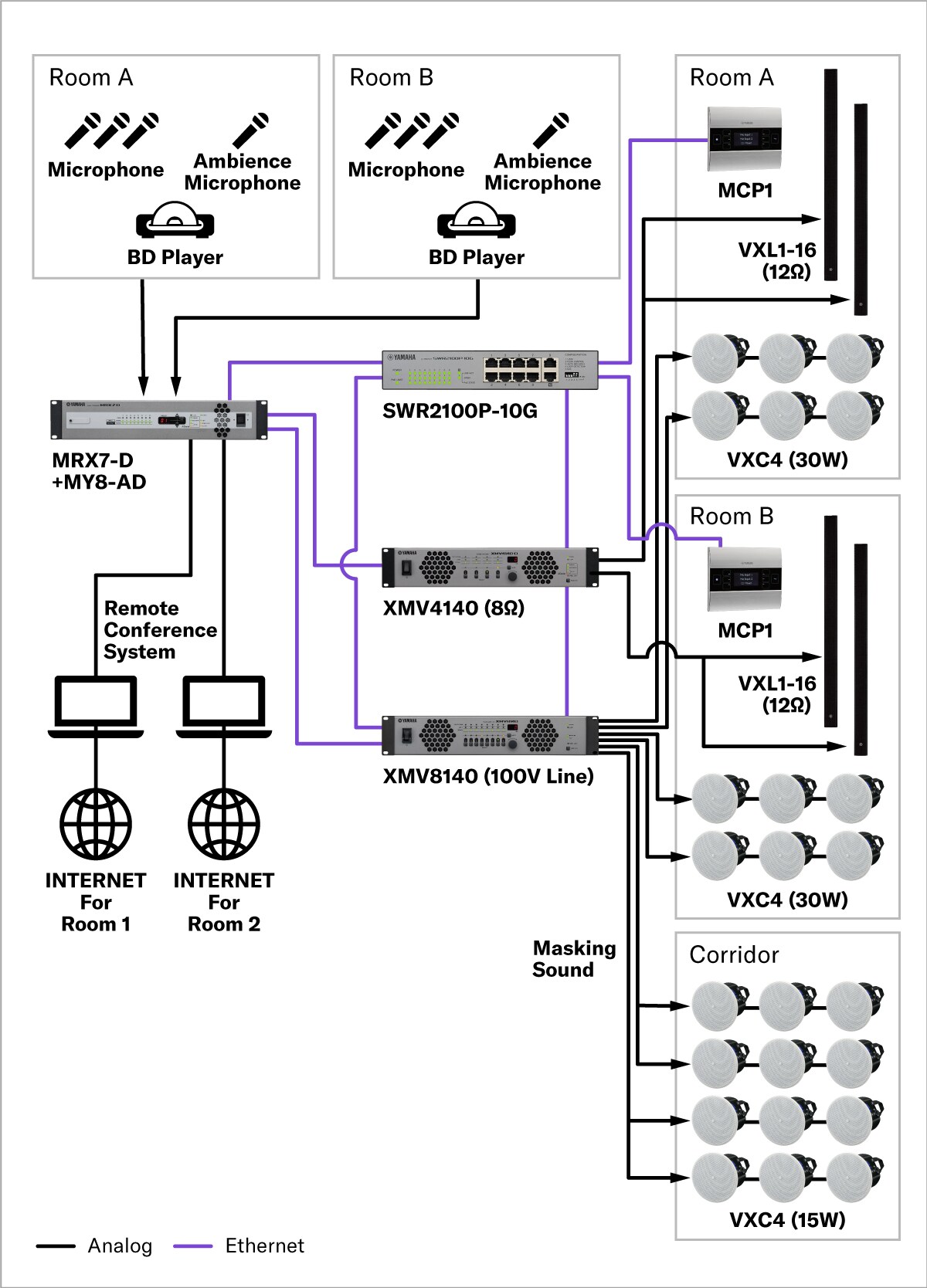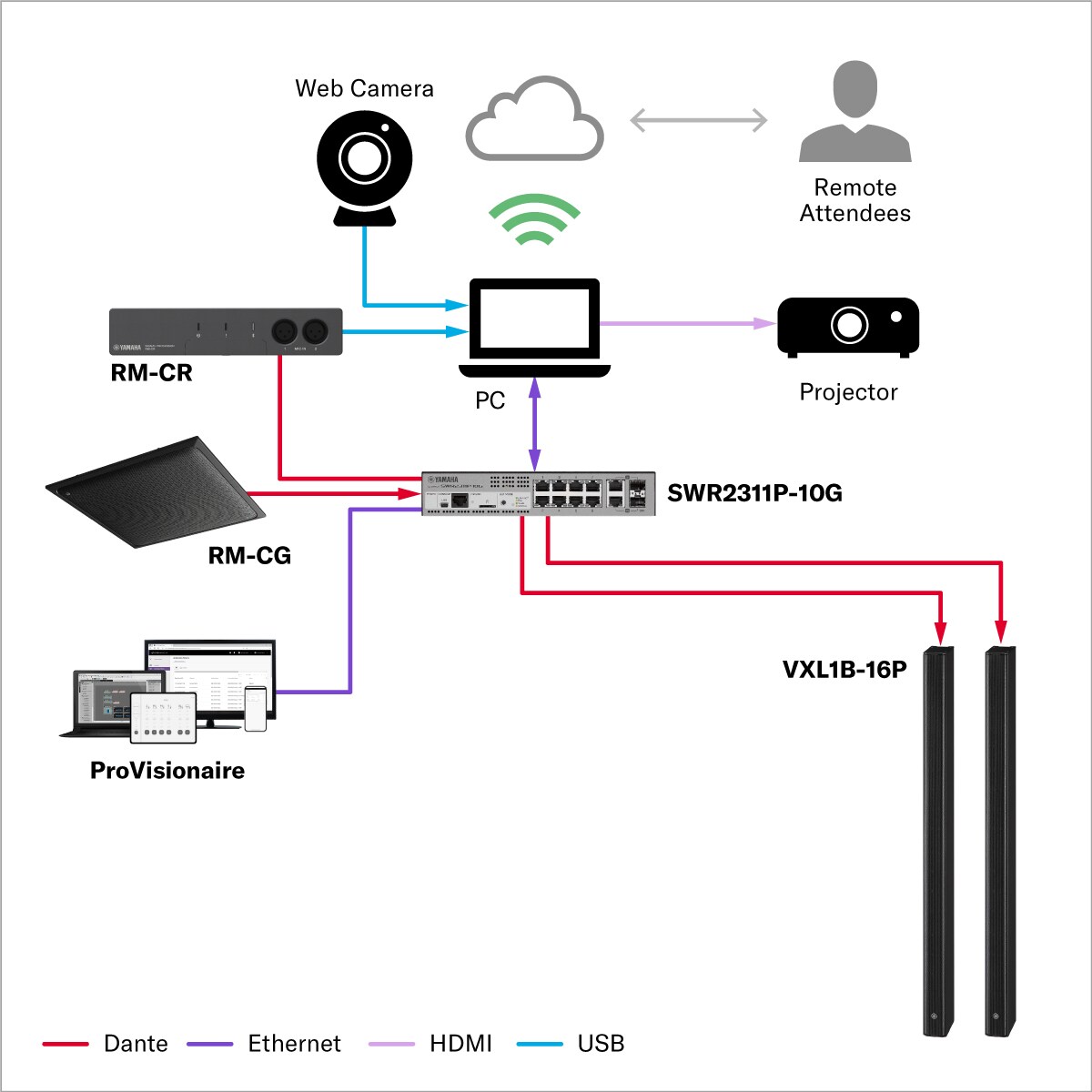 야마하는 다양한 기능과 파워를 가진 광범위한 프로세서 및 스피커 라인업을 제공하여 특정 애플리케이션에 가장 적합한 사운드 시스템을 구성할 수 있습니다. 소규모 회의 공간에서 대규모 원격 회의, 강당 및 의회 회의실에 이르기까지 당사의 인상적인 제품 호환 범위는 광범위한 오디오 환경의 요구를 충족하도록 설계되었습니다.