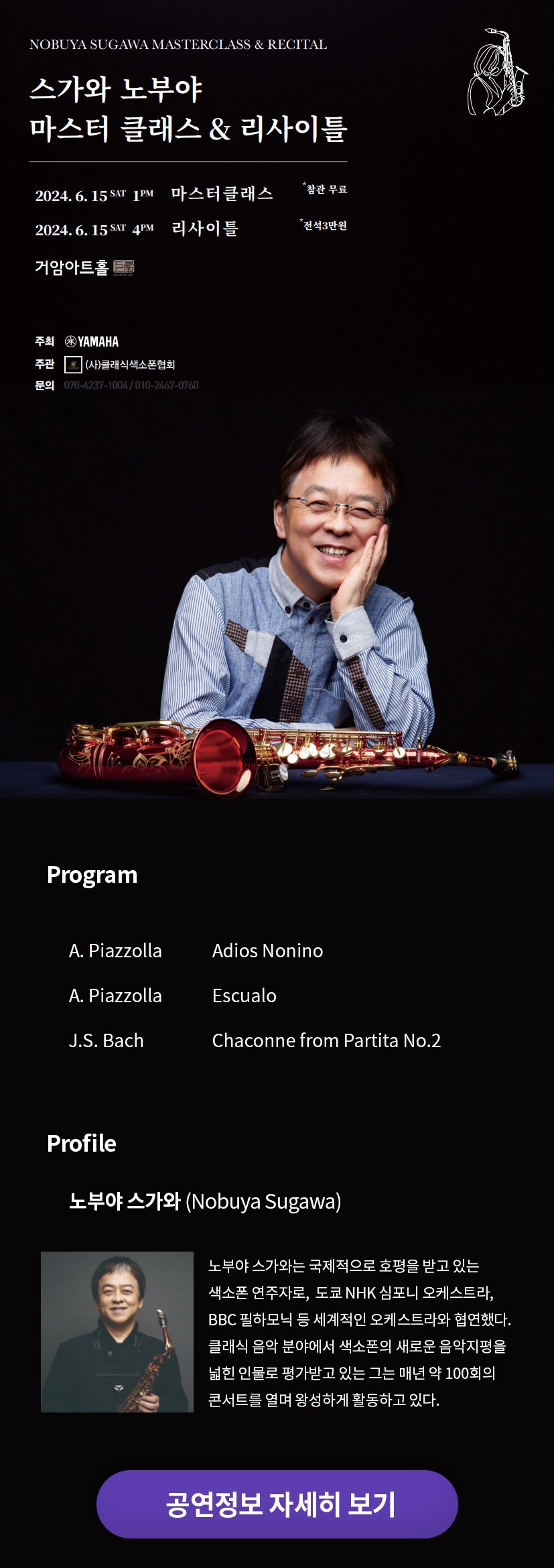 노부야 스가와 색소폰 리사이틀 초대권 이벤트