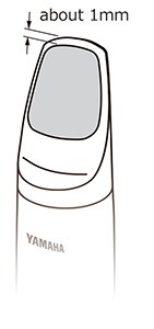 2. 마우스피스 끝에서 약 1mm 위치에 부착하십시오. 패치와 마우스피스 사이에 공기가 들어 가지 않도록 패치를 잡으십시오.