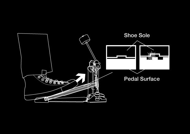 Pedal angle, when not depressed, can be set freely. This lets you align pedal height with other pedals such as in a double foot pedal setup. Rubber coated tie rods help to prevent pedal hopping.