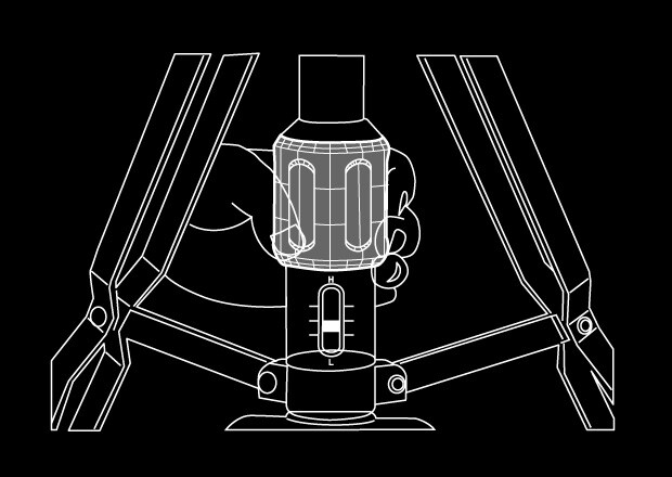 Knock-type spikes that extend with a single touch, combined with large rubber feet keep the stand stable and secure.