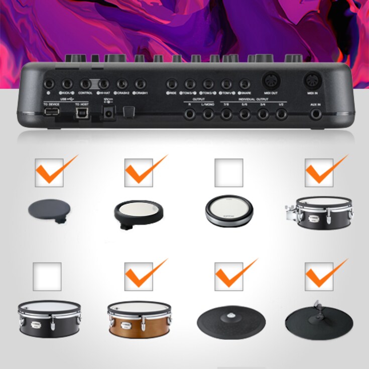 다양한 Yamaha 드럼 패드와 여러분의 드럼 모듈 입력이 호환되는지 자세히 살펴 보십시오.