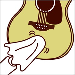 기타를 연주한 직후 악기 청소용으로 만들어진 마른 천으로 기타를 닦아야 합니다. 잘 닦기만 해도 기타를 장시간 양호한 상태로 유지할 수 있습니다. 작은 스크래치를 통해 기름과 땀이 바디나 핑거보드로 들어가 균열이 일어날 수 있는데, 연주 직후 악기에서 기름과 땀을 닦아주면 균열을 방지할 수 있습니다. 이때, 실리콘이 들어가지 않은 천만 써야 합니다. 실리콘이 있으면 악기의 코팅이 약화될 수 있습니다.