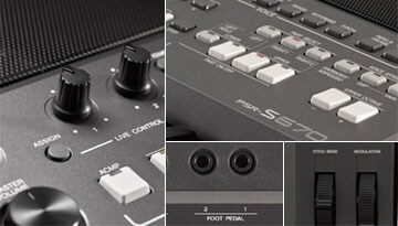 2개의 지정 가능 라이브 컨트롤러, 1개의 모듈레이션 휠, 2개의 지정 가능 풋 페달 입력을 특징으로 하는 PSR-S670은 라이브 연주 중 음성, 스타일, 이펙트 및 기타 기능을 완벽하게 제어할 수 있습니다. 또한 새로운 라이브 연주 컨셉인 DJ 스타일에는 코드 진행 모음이 있어 왼손으로 계속 코드를 바꿀 필요가 없습니다. 이제 자유롭게 된 두 손으로 멜로디 라인을 연주하거나, 라이브 컨트롤러를 사용하거나 멀티 패드로 추가 외부 오디오를 재생할 수 있어 더욱 환상적인 연주를 할 수 있습니다.