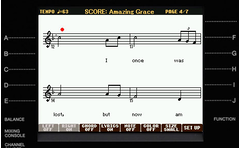 대형 LCD 화면에 가사, 음악 악보나 텍스트를 표시할 수 있습니다. 외부 모니터에 이 정보를 표시하는 것도 가능합니다