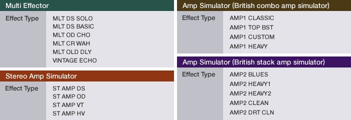 리얼 디스토션 이펙트는 1960년대 및 1970년대 클래식 기타 앰프를 디지털화한 모델을 기초로 하고 있습니다. 전설적인 아날로그 기타의 이펙트 페달을 디지털화한 모델도 있습니다. 그 결과, 리얼 디스토션 기타 음향의 주파수와 다이나믹이 정교하게 재현됩니다.