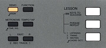 악기에 저장되어 있는 곡을 초보자가 연습할 수 있도록 왼손 연습 3단계, 오른손 연습 3단계, 양손 연습 3단계 총 9단계로 구성된 레슨 기능을 제공합니다. 채점 기능으로 재미있게 연습할 수 있으며, “대기(Waiting)” 기능을 활용하여 각 개인의 연주력에 맞게 템포를 조절하거나 올바른 음을 연주할 때까지 반주를 일시 정지시킬 수도 있습니다.