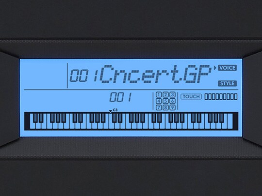 키보드가 연주되는 강도를 시각적으로 표현하는 속도계가 특징인 맑고 읽기 쉬운 LCD 디스플레이가 있습니다.