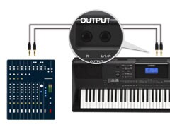외부 오디오 플레이어를 AUX IN 잭에 연결하면 원하는 곡을 따라서 연주할 수 있습니다. 고급 기능인 멜로디 서프레서 기능으로 원곡의 보컬과 멜로디 라인의 음량을 낮추고 연주할 부분만 남겨둘 수 있습니다.**