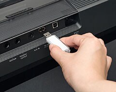악기에 장착된 USB 장치 단자를 통해 나만의 설정이나 곡을 저장하거나 실행시킬 수 있으며, USB 플래시 드라이브와 같은 장치를 연결해서 PC에서 데이터를 전송할 수도 있습니다.