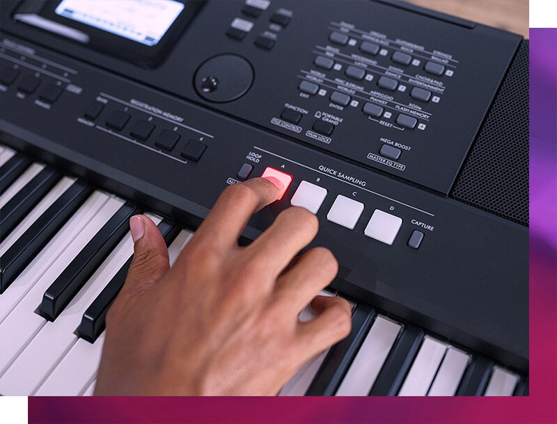 AUX 입력, 마이크 입력 또는 USB 저장 장치에 있는 파일을 불러와 악기 외부의 소리를 캡처한 다음 키보드에서 직접 소리를 재생할 수 있습니다. 가능성은 무한합니다!