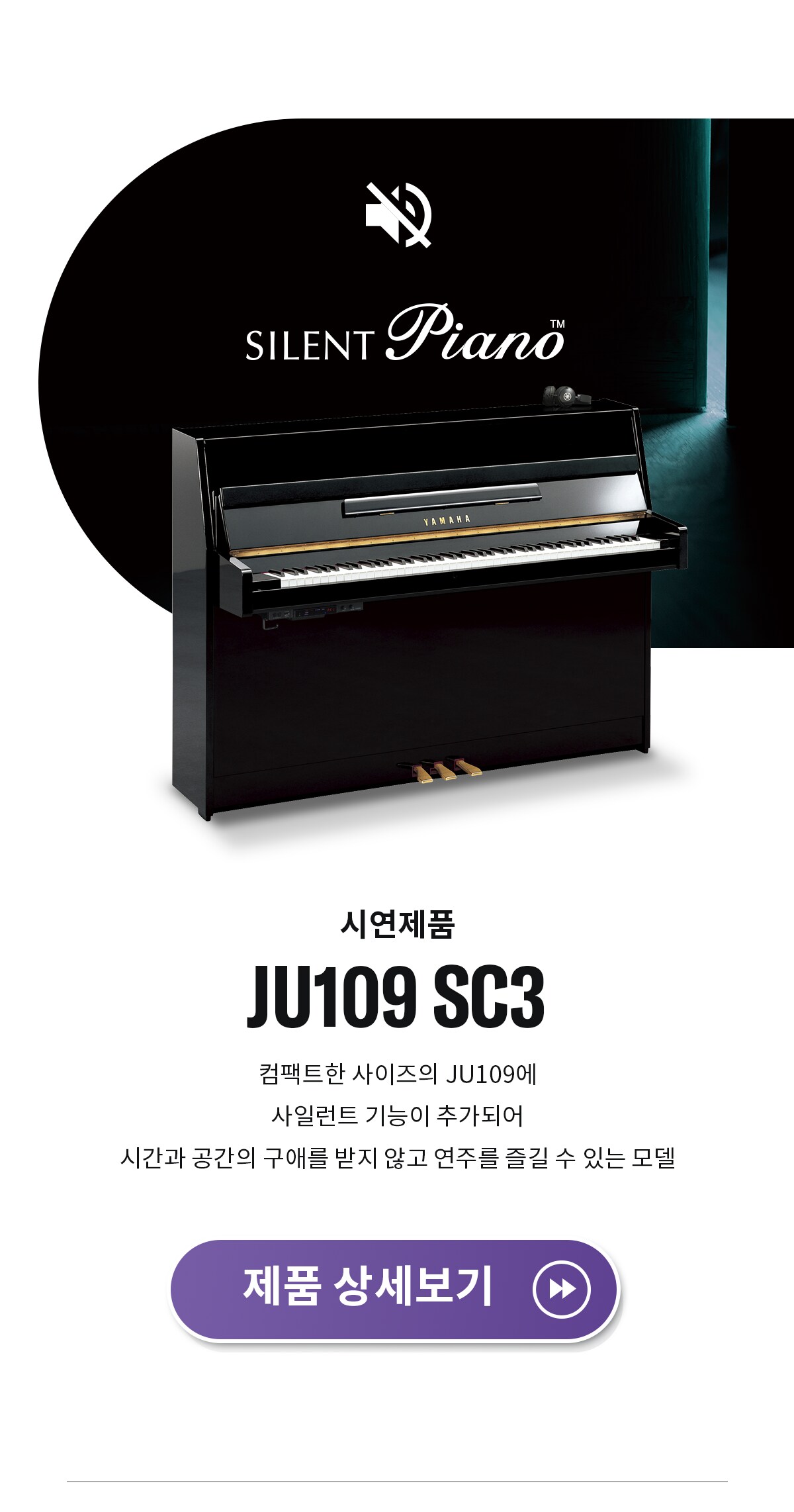 자연의 아름다움을 그대로 표현한 JU109 모델은 Yamaha의 장인 기술과 현대적인 기술을 훌륭하게 접목하여 탄생한 피아노로서 적절한 가격과 연주의 즐거움을 제공합니다. 이 JU109 모델에는 사일런트 시스템이 추가되었습니다. 이 모델은 SC3형 SILENT Piano™입니다.