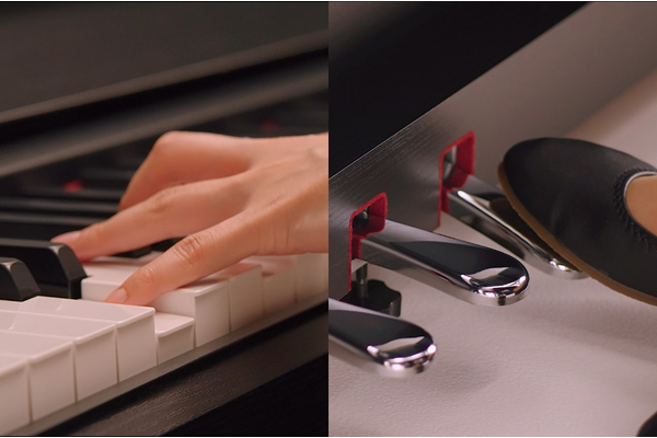 두 명의 연주자가 하나의 피아노로 같은 소리와 옥타브 음역에서 나란히 연주할 수 있는 두 개의 건반이 만들어집니다. 이 기능은 선생님과 함께 레슨 할 때 특히 유용하며, 가족, 친구와 함께 배우고 연습할 수 있습니다.