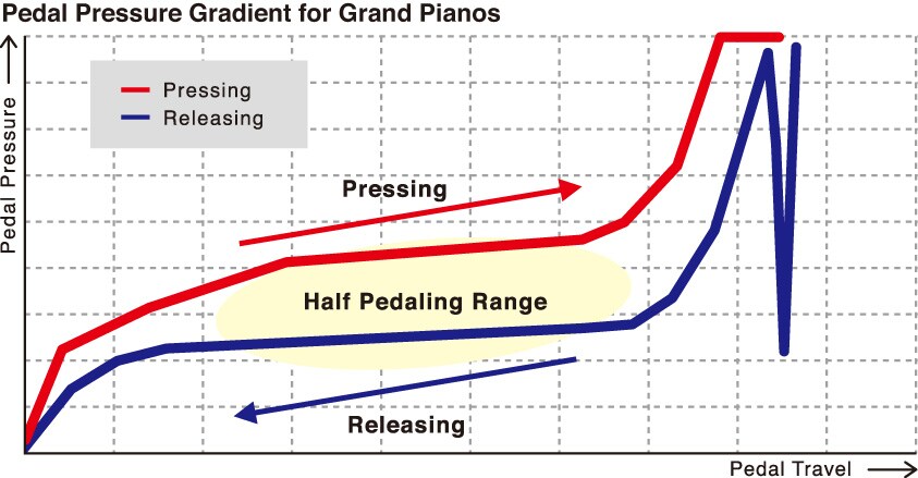 그랜드 피아노 페달을 밟을 때 연주자는 미묘하게 다른 단계를 알아차립니다. 처음에 가볍게 닿고, 누르는 동안 어느 정도 약간 더 무거워진 다음, 끝까지 누르면 다시 더 가벼워집니다. 숙련된 연주자는 이러한 페달 작동을 이용하여 매우 섬세한 페달링으로 연주에서 정교한 뉘앙스를 표현합니다. AvantGrand를 개발할 때 Yamaha는 그랜드 피아노 페달의 감각을 최대한 충실하게 재현하도록 설계했습니다. 그 결과 페달은 의도한 그대로 음악을 연주할 수 있는 넓은 범위를 제공할 뿐 아니라, 하프 페달링이 많이 필요한 곡을 더욱 인상적으로 연주할 수 있는 섬세한 반응성을 제공합니다.