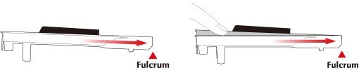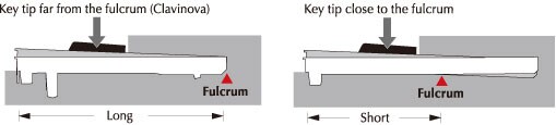 Clavinova의 건반은 악기 바디 내부에 숨겨진 지지점이 건반의 끝점과 최대한 멀리 떨어져 연주 기능과 편안함을 개선시키고, 건반 뒤쪽에서도 깊은 소리가 나도록 만들어졌습니다. 이 구성 덕에 검은 건반과 흰 건반 뒤쪽을 주로 연주하는 곡에서도 건반 움직임이 양호해 터치의 미묘한 차이가 살아 있고, 표현력이 넓어집니다