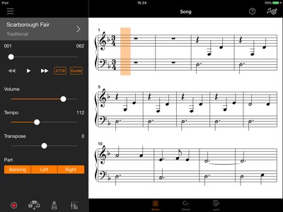 Smart Pianist에는 스마트 기기에 있는 곡을 피아노 반주 악보로 자동 생성하는 “오디오를 악보로 변환(Audio To Score)" 기능이 있어 원하는 곡을 따라 연주할 수 있습니다.