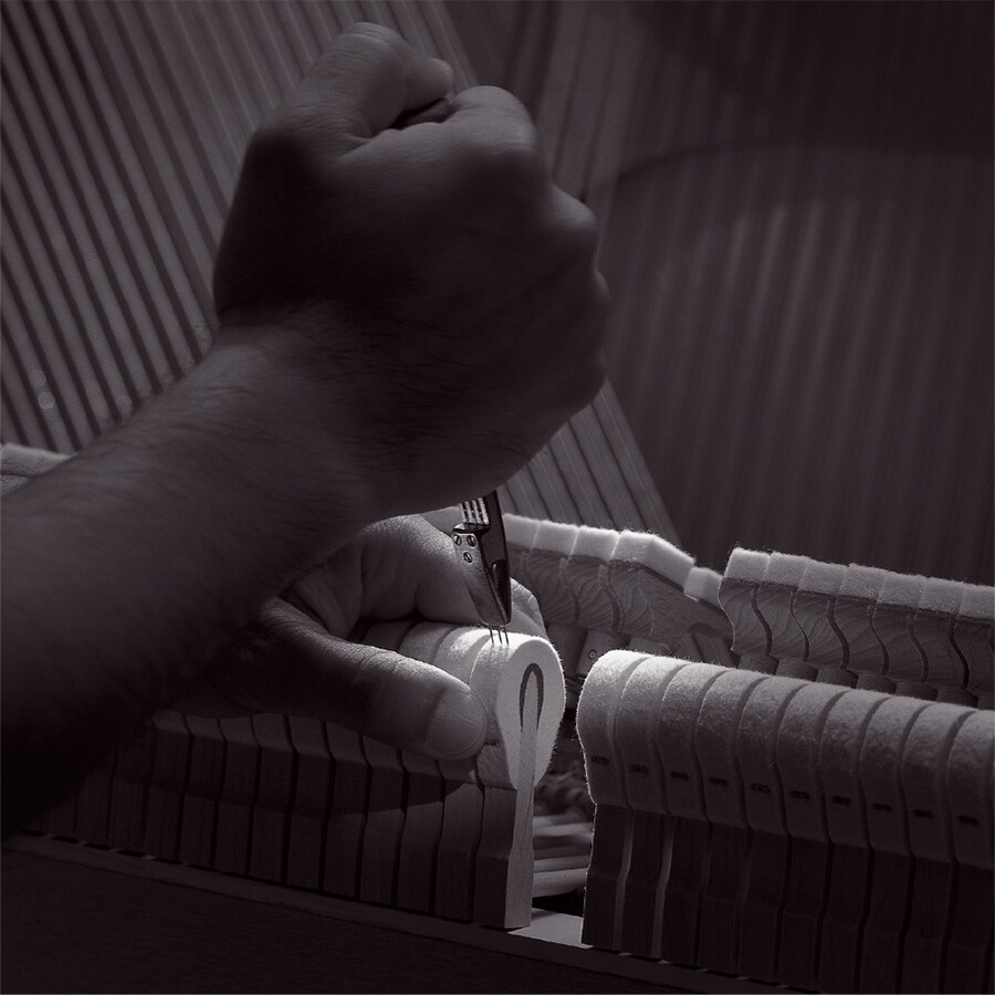 업라이트 피아노는 약 8,000개의 부품으로 구성됩니다. 이들 중 많은 부품들은 특히 사운드와 관련이 있으며, 그 선택은 피아노의 음질에 큰 영향을 미칩니다. YUS 시리즈를 제작할 때, 당사는 표현력이 풍부한 다이나믹 레인지를 최적화하고 색감 있는 반짝이는 톤을 추구하고자 세계적으로 유명한 플래그십 Yamaha CFX 콘서트 그랜드 피아노(특히 펠트 해머와 피아노 현)에 사용된 것과 동일한 소재를 도입했습니다. 또한, 당사의 숙련된 장인이 사운드에 생명을 불어 넣고 연주자에게 깊은 감성으로 반응하는 놀라운 음질을 전달하는 피아노 각각의 보이스를 완벽하게 전달하기 위해 막대한 시간과 세심한 노력을 기울였습니다.