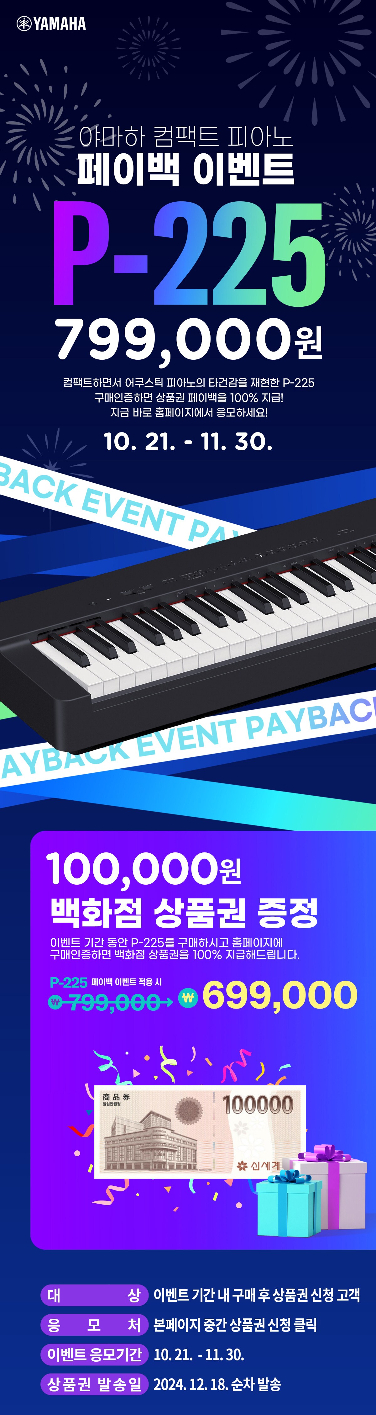 야마하 컴팩트 피아노 P-225 페이백 이벤트