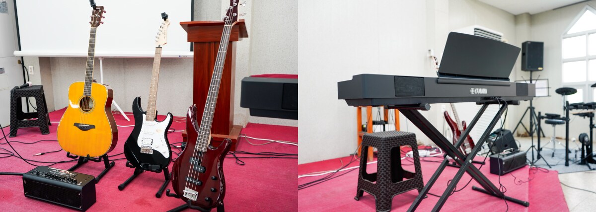 - 디지털 피아노부터 드럼, 기타 등 총 8종의 악기 및 음향 장비 전달