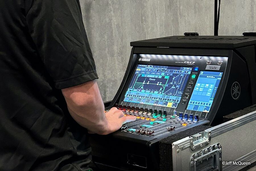 이 이벤트의 복잡성은 유연하고 견고한 시스템을 요구했습니다. 야마하의 Dante 기반 인프라가 중심을 이루었고, 행사장 전역에 11개의 콘솔이 배치되었습니다. 여기에는 (2) DM7-EX, (4) DM7-C, (5) DM3 시스템이 포함되며, 각각이 로컬 믹스 포인트 및 I/O 허브 역할을 했습니다.
