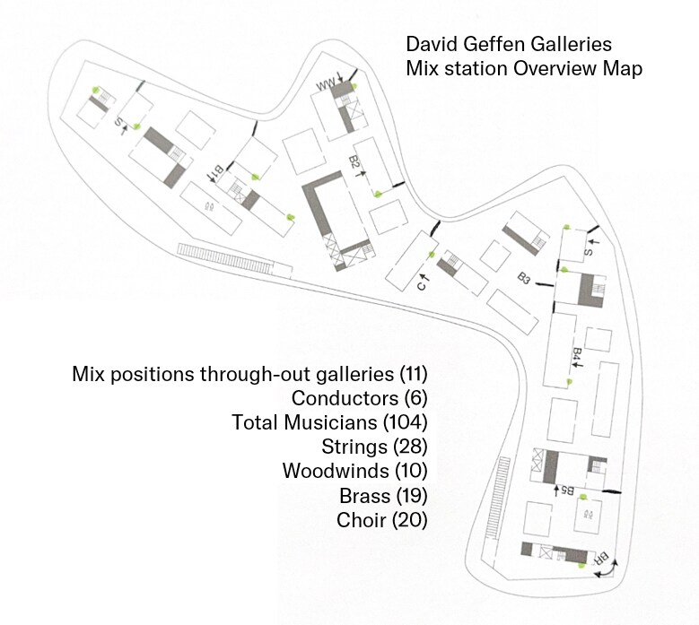 믹스 스테이션은 데이비드 게펜 갤러리 전역에 배치됨