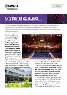 아부다비 뉴욕대학교 예술 센터는 '공연을 위한 활기찬 실험실'로 스스로를 설명하는 역동적이고 혁신적인 허브입니다. 최근 이곳의 세 공연 공간에 대한 주요 음향 업그레이드를 위해 Yamaha RIVAGE PM5 디지털 믹싱 시스템 두 대가 선택되었습니다.