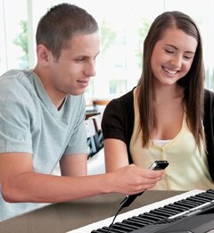 설치 방법은 어렵지 않습니다. iPhone / iPod touch / iPad에서 앱를 실행하기 전에 휴대용 키보드, 전자 드럼 키트 및 신디사이저 등의 악기를 i-UX1에 연결하기 만하면됩니다.